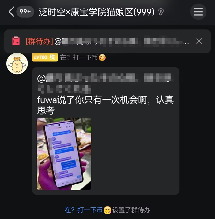 1、因为 fuwa 两句污蔑人的话把本人和私聊记录挂群待办。